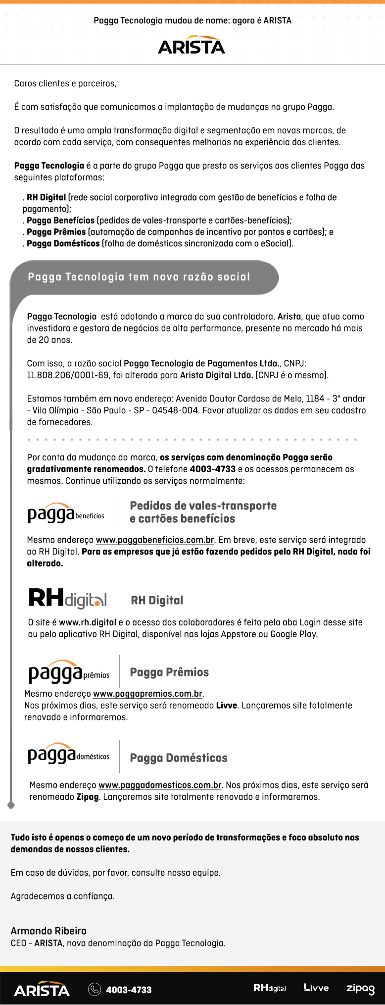 Há mais de vinte anos a Arista constrói, investe e gere negócios inovadores e de alta performance, em vários segmentos de serviços. A empresa tem vários cases de sucesso e está continuamente em modo beta para aproveitar novas oportunidades e desenvolver soluções que melhorem a vida de seus clientes e das pessoas que neles trabalham.